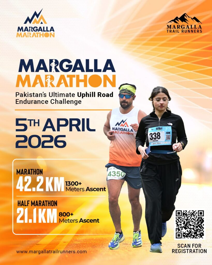 Margalla Trail Runners (MTR) is bringing yet another exciting and unique project. The wait is over! Margalla Trail Runners proud to present Margalla Marathon on the hills of Islamabad. Margalla Marathon is a hill road Marathon and test of Ultimate Uphill Endurance Challenge which will happen right here in the Capital. Take on the Marathon (1300m ascent) or the Half Marathon (800m ascent) distance. Both packed with grit, grind, and breathtaking views. Margalla Marathon project by Margalla Trail Runners.