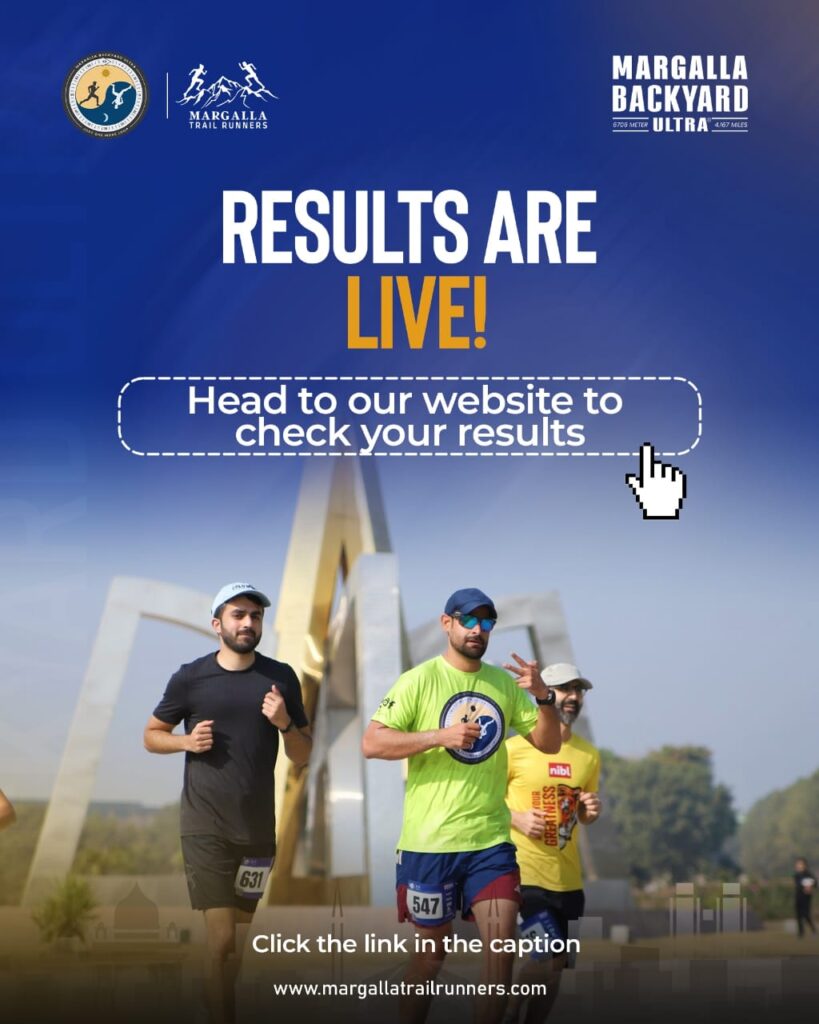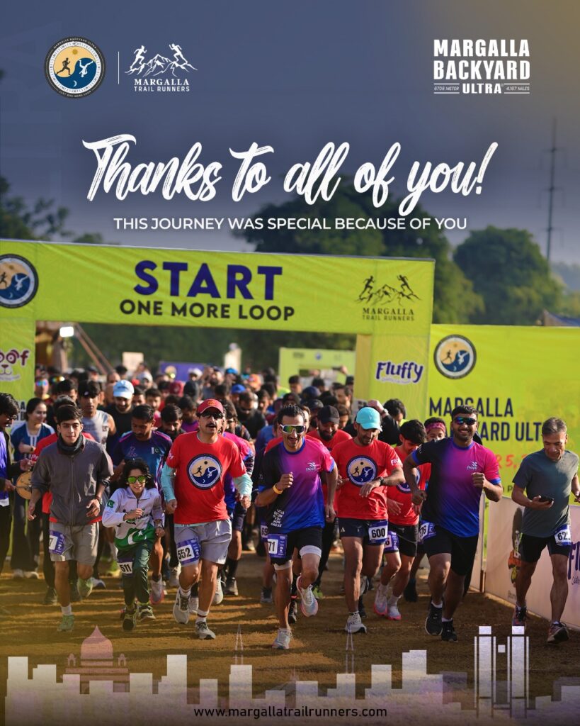 Margalla Trail Runners (MTR) organizes the Margalla Trail Running Festival from 300m to Marathon distance trail races at Trail 4 and Dhok Jewan of Margalla Hills in February every year. Margalla Marathon in the 1st Sunday of April every year. In the 3rd week July every year, MTR organizes the Galiyat Mountain Trail 60k and 20k by UTMB Index Races in the Galiyat Trails Pakistan. MTR organizes Margalla Backyard Ultra in the 1st week December every year.
